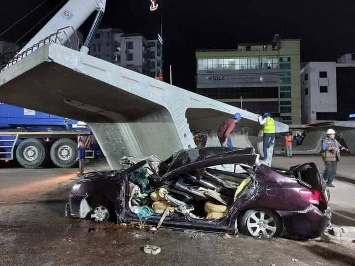 রাজধানীর উত্তরায় বিআরটি প্রকল্পের ফ্লাইওভারের গার্ডারের নিচে প্রাইভেট কারটি চাপা পড়ে থাকায় মরদেহ বের করতে পারছিলেন না ফায়ার সার্ভিসের কর্মীরা।