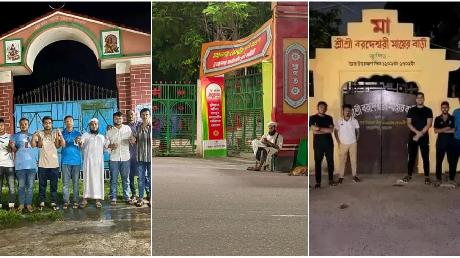 রাত জেগে মন্দির পাহারা দিয়েছে ছাত্র-জনতা