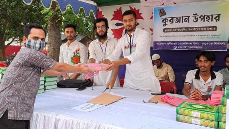 রাবি শিক্ষার্থীদের কুরআন বিতরণ