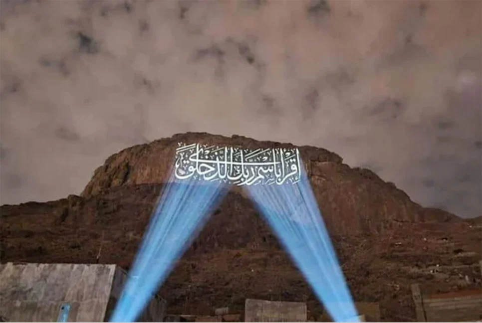 সৌদি আরবের মক্কা নগরীতে লেজার লাইটের সাহায্যে কোরআনের প্রথম আয়াত প্রদর্শন করা হয়েছে। লেজারটি জাবাল আল-নূর পাহাড়ের উপর স্থাপন করা