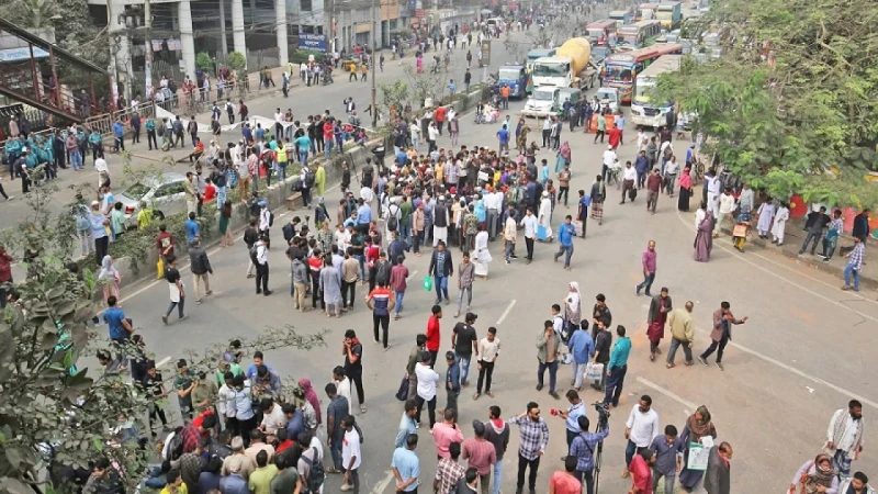 গণ-অভ্যুত্থানে আহতদের ফের সড়ক অবরোধ, যান চলাচল বন্ধ