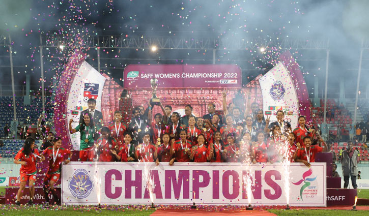 নারী সাফ চ্যাম্পিয়নশিপে ইতিহাস গড়েছে বাংলাদেশের মেয়েরা। আজ সোমবার নেপালের কাঠমান্ডুর দশরথ রঙ্গশালা স্টেডিয়ামে অনুষ্ঠিত ফাইনালে চারবারের ফাইনালিস্ট নেপালকে উড়িয়ে ৩-১