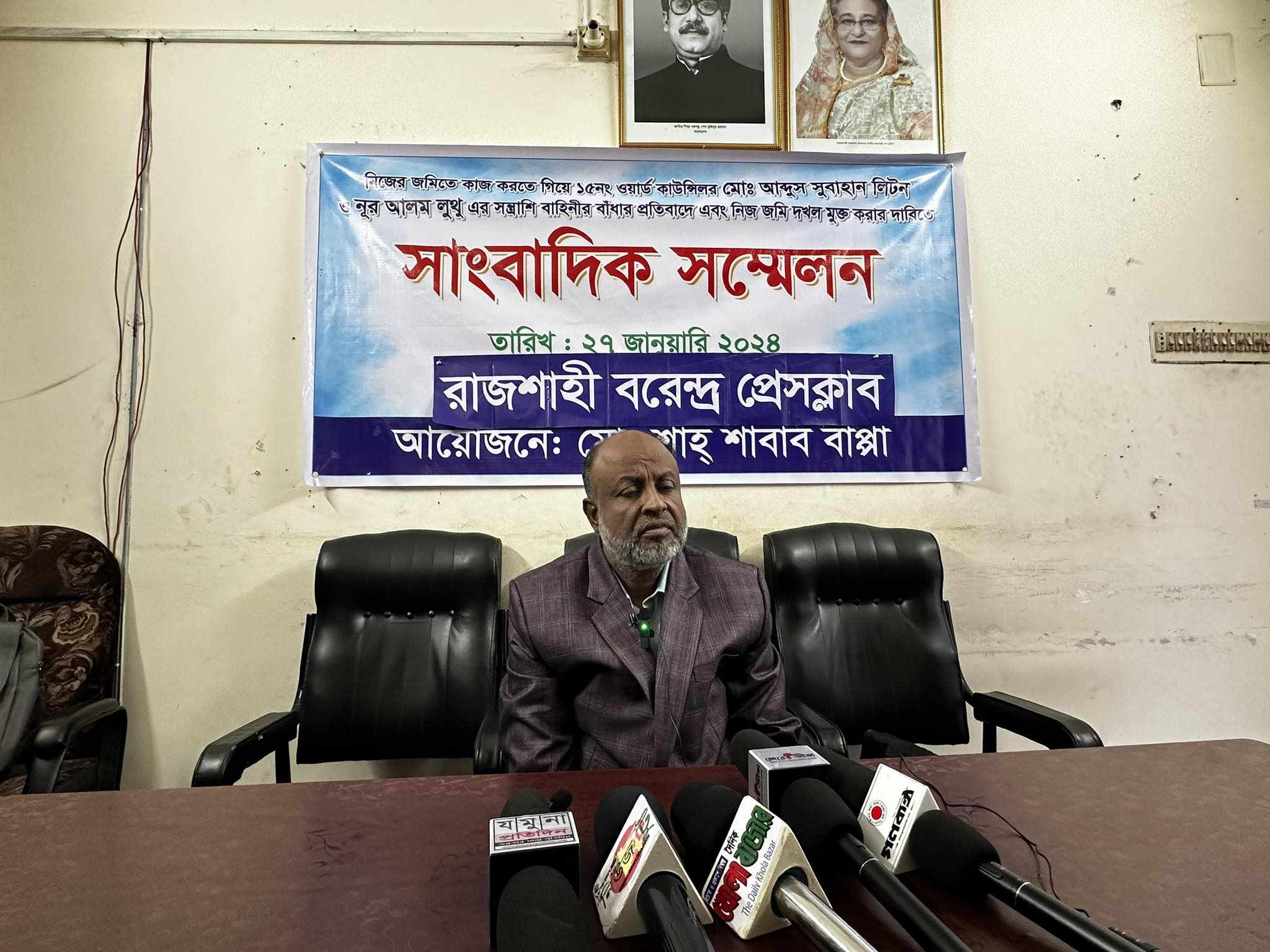 রাজশাহীতে সন্ত্রাসী হামলার প্রতিবাদ ও জমি দখলমুক্ত করার দাবিতে সংবাদ সম্মেলন