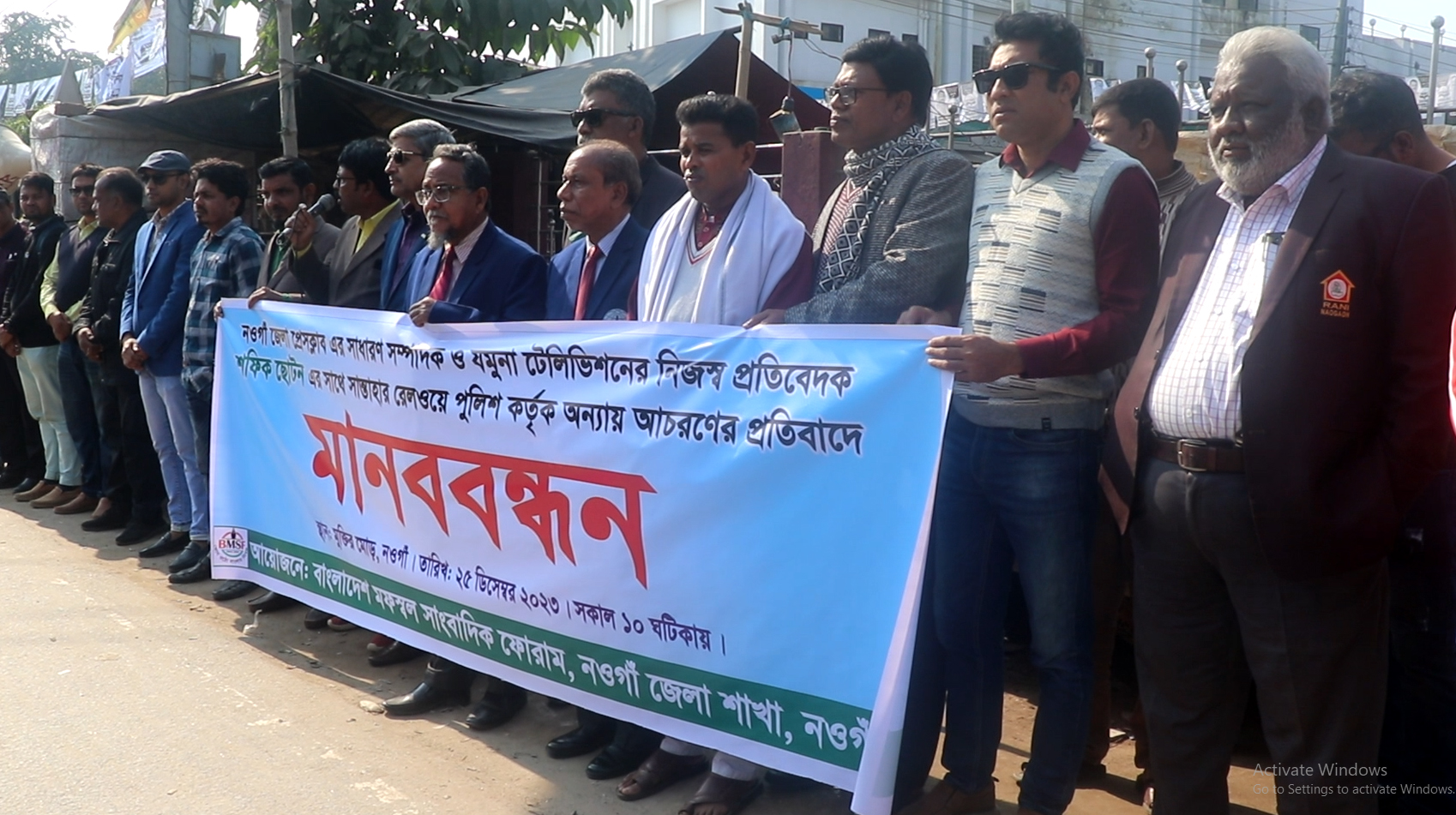 সান্তাহারে সংবাদ সংগ্রহের সময় যমুনা টেলিভিশনের নিজস্ব প্রতিবেদক শফিক ছোটনের সাথে জিআরপি থানার পুলিশ সদস্যদের অন্যায় আচরনের প্রতিবাদে মানববন্ধন হয়েছে