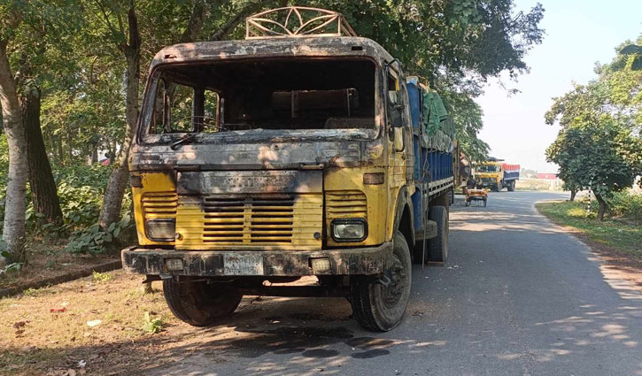 বগুড়ায় ট্রাকে আগুন দিয়েছে দুর্বৃত্তরা