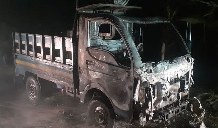 জয়পুরহাটে পিকআপে দুর্বত্তদের আগুন