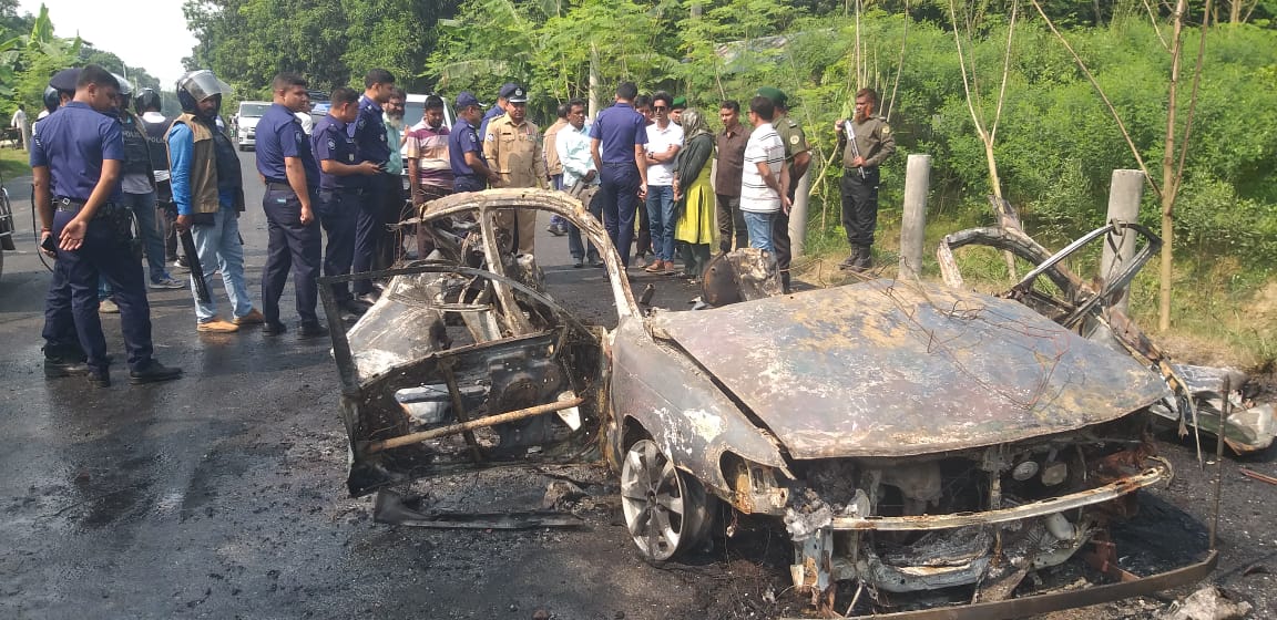 বাঘায় প্রাইভেটকারে আগুন দিল হরতাল সমর্থকরা
