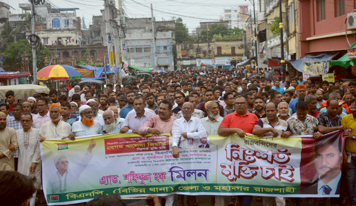 বিএনপি নেতা মিলনের মুক্তির দাবী বিক্ষোভ মিছিল