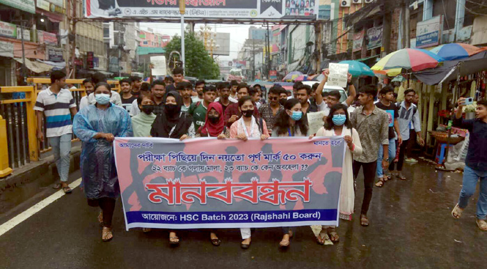 ২০২৩ সালের এইচএসসি পরীক্ষা পিছিয়ে দেয়া ও আন্দোলনরত শিক্ষার্থীদের উপর পুলিশি হামলা মারপিট এবং আটকের প্রতিবাদে রাজশাহী নগরীতে দ্বিতীয় দিনের