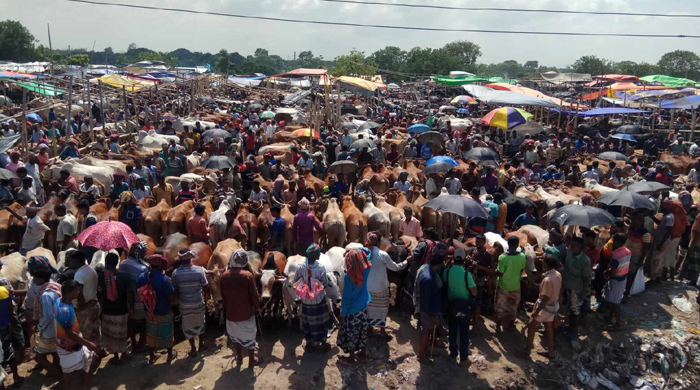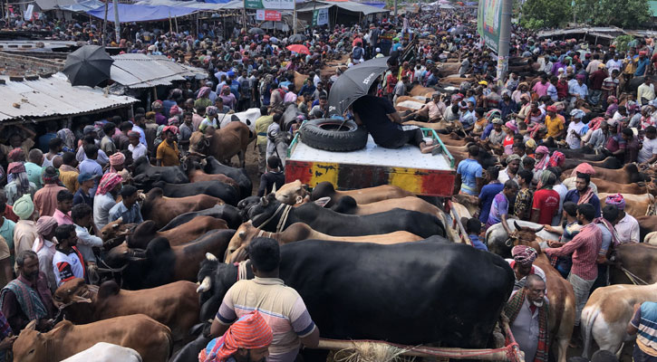 রাজশাহীতে এখন জমজমাট পশুর হাট। তবে এখনও দাম কমছে না কোরবানির পশুর। তাই মানুষের ভিড়ে পশুর হাট জমে ওঠলেও কেনাবেচা