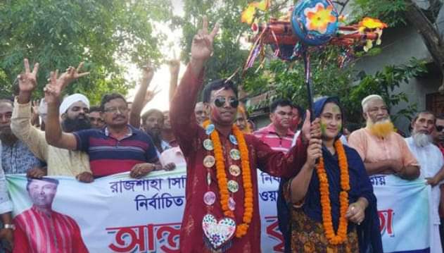 রাসিক ১৯ নং ওয়ার্ড কাউন্সিলর সুমনের বিজয় মিছিল