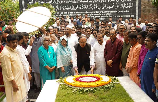 জাতির পিতা বঙ্গবন্ধু শেখ মুজিবুর রহমান ও জাতীয় চার নেতার প্রতিকৃতিতে এবং নগরীর কাদিরগঞ্জস্থ জাতীয় নেতা শহীদ এ.এইচ.এম কামারুজ্জামান ও