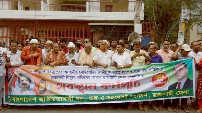 রাজশাহীতে বিদ্যুৎ অফিসের সামনে বিএনপির অবস্থান কর্মসূচি ও স্মারকলিপি প্রদান