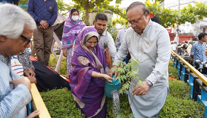 নগরীতে নিম গাছের চারা রোপান করলেন লিটন ও শাহীন আকতার রেণী
