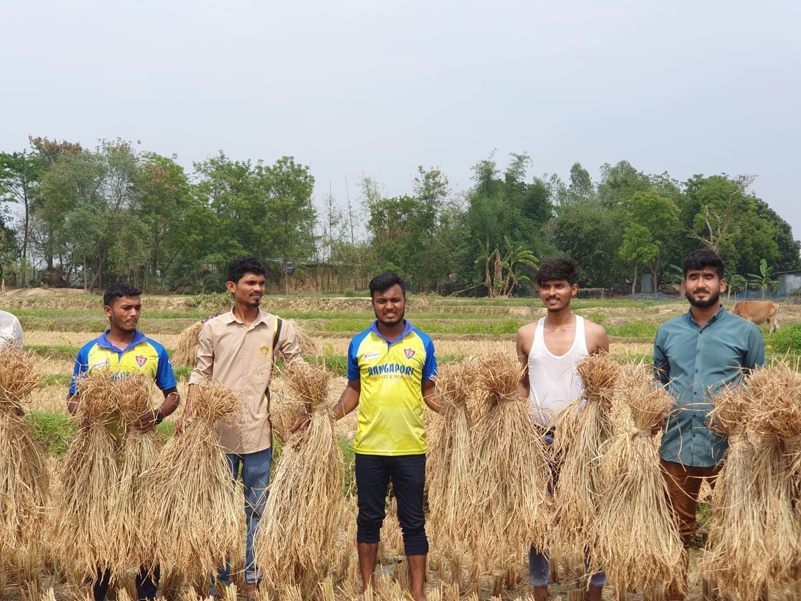 কৃষকদের পাশে দাঁড়ালো রাবি ছাত্রলীগ, কেটে দিলো ধান
