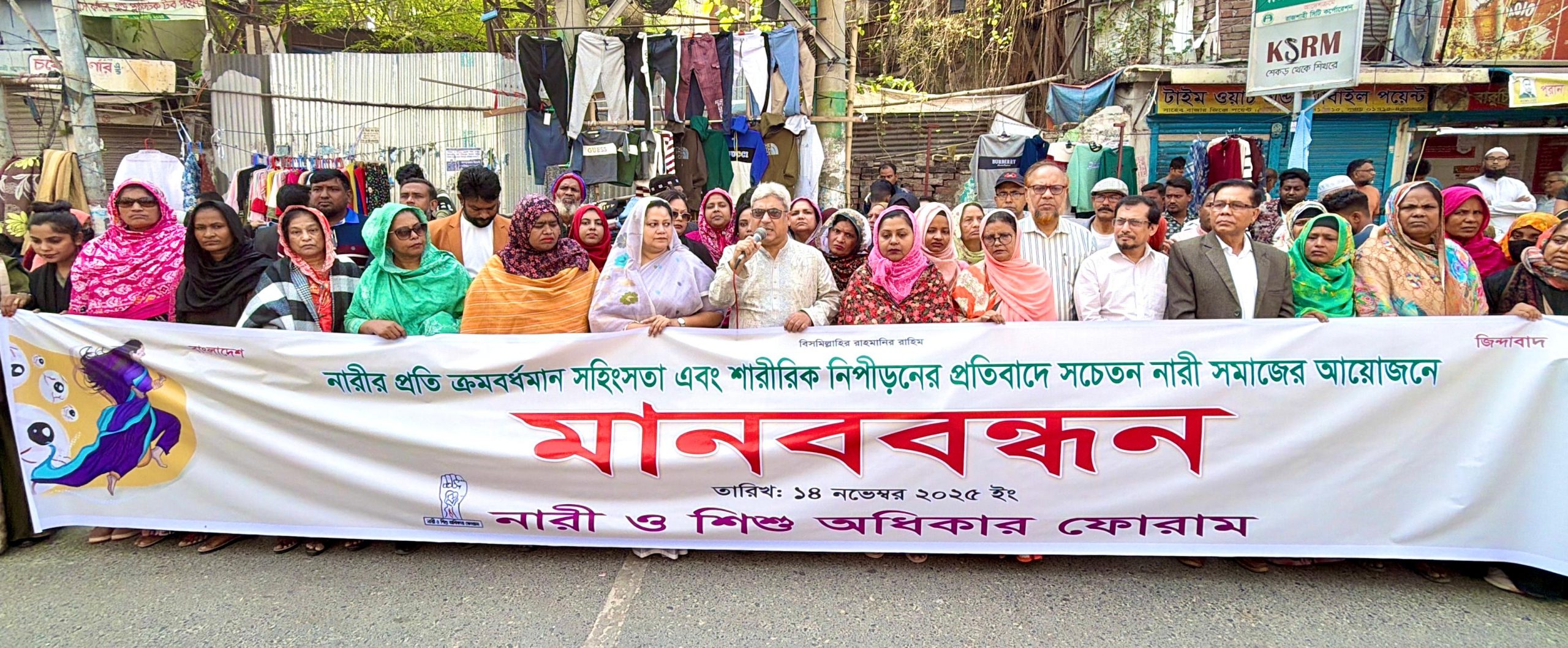 নারীর প্রতি সহিংসতা ও শারীরিক নিপীড়নের প্রতিবাদে রাজশাহীতে মানববন্ধন