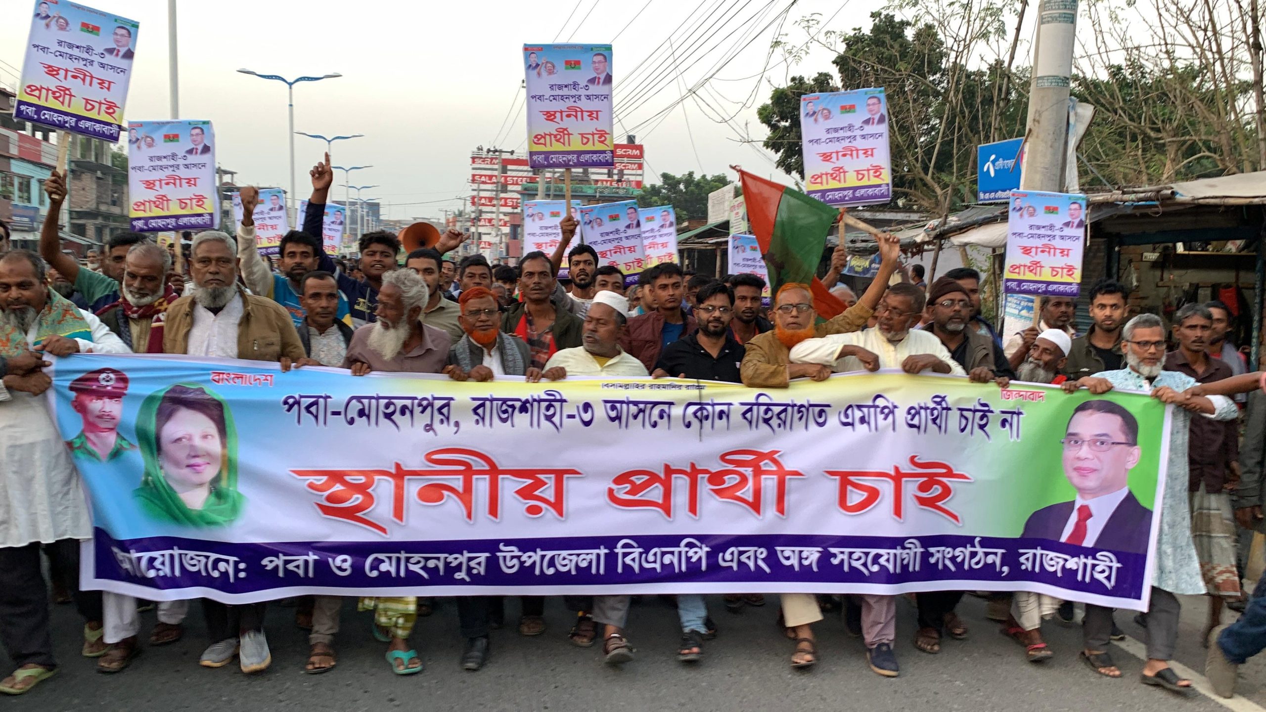 রাজশাহী-৩ আসনে স্থানীয় প্রার্থীর দাবিতে মহাসড়ক অবরোধ