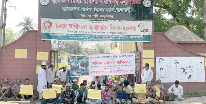 নয় মাসের বকেয়া বেতন পরিশোধের দাবিতে তিন মাস ধরে আন্দোলন করছেন বাংলাদেশ রেশম বোর্ডের শ্রমিকরা। আন্দোলনের ফলে বেতন না হলেও