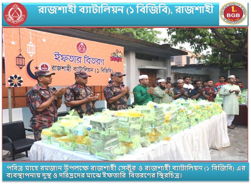 রাজশাহীতে দুঃস্থ ও দরিদ্রদের মাঝে বিজিবির ইফতার ও খাদ্য সামগ্রী বিতরণ করা হয়। সারাদেশে বিজিবি কর্তৃক দুঃস্থ ও দরিদ্রদের মাঝে