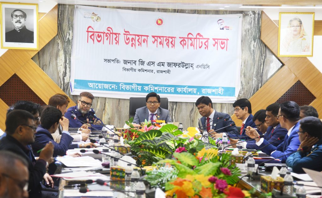 রাজশাহী বিভাগীয় উন্নয়ন সমন্বয় কমিটির সভা অনুষ্ঠিত হয়েছে। আজ সোমবার (২০ ফেব্রুয়ারি) দুপুরে বিভাগীয় কমিশনার জি এস এম জাফরউল্লাহ্, এনডিসি’র