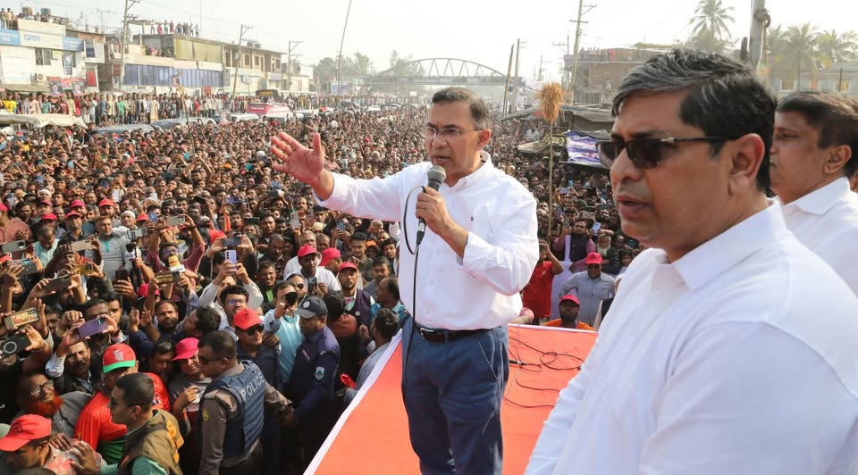 জনসভার মঞ্চে তারেক রহমান