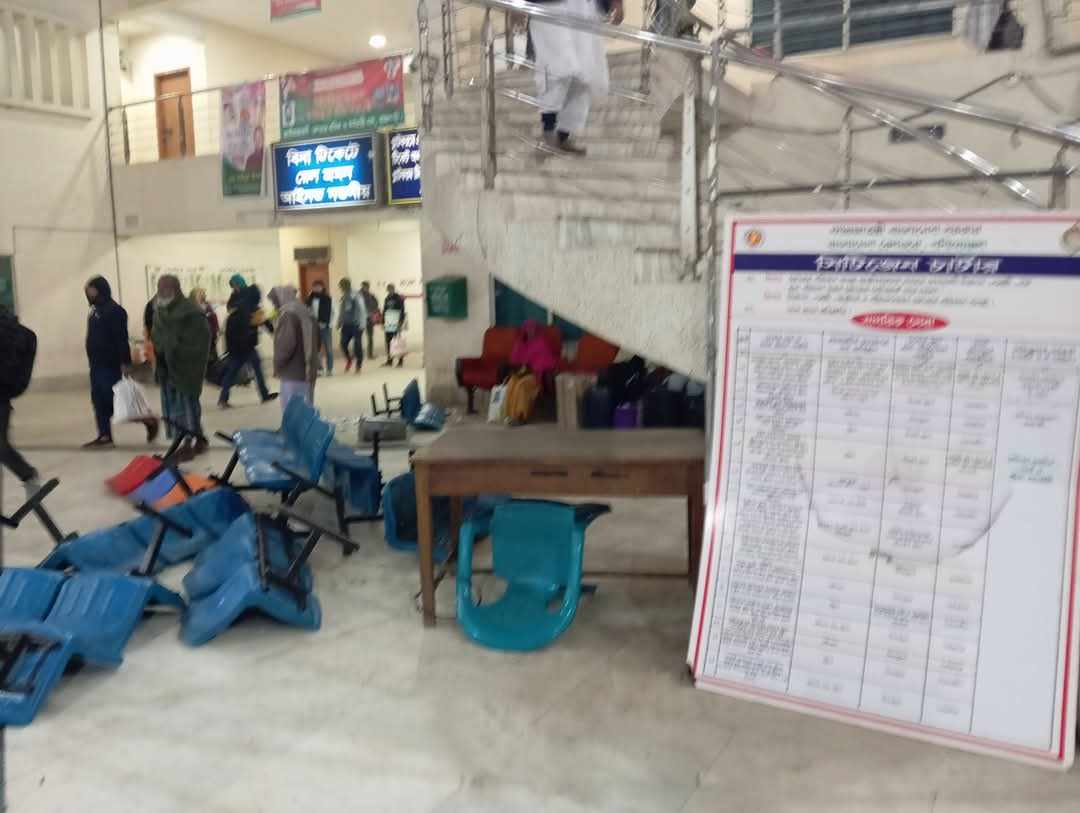 ট্রেন বন্ধ, ক্ষোভে স্টেশনে ভাংচুর চালালেন যাত্রীরা