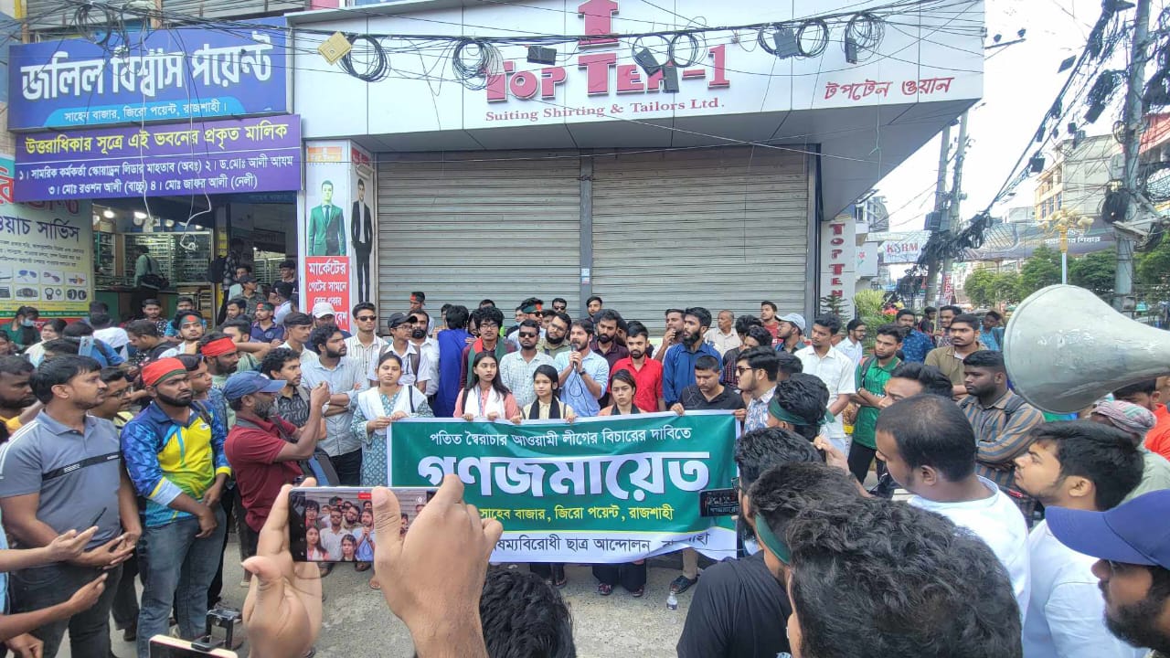 আওয়ামী লীগের বিচারের দাবিতে রাজশাহী নগরীর সাহেববাজার জিরোপয়েন্টে বৈষম্যবিরোধী ছাত্রদের পক্ষ থেকে গণজমায়েত কর্মসূচি পালন করা হয়। রবিবার সকাল ১১