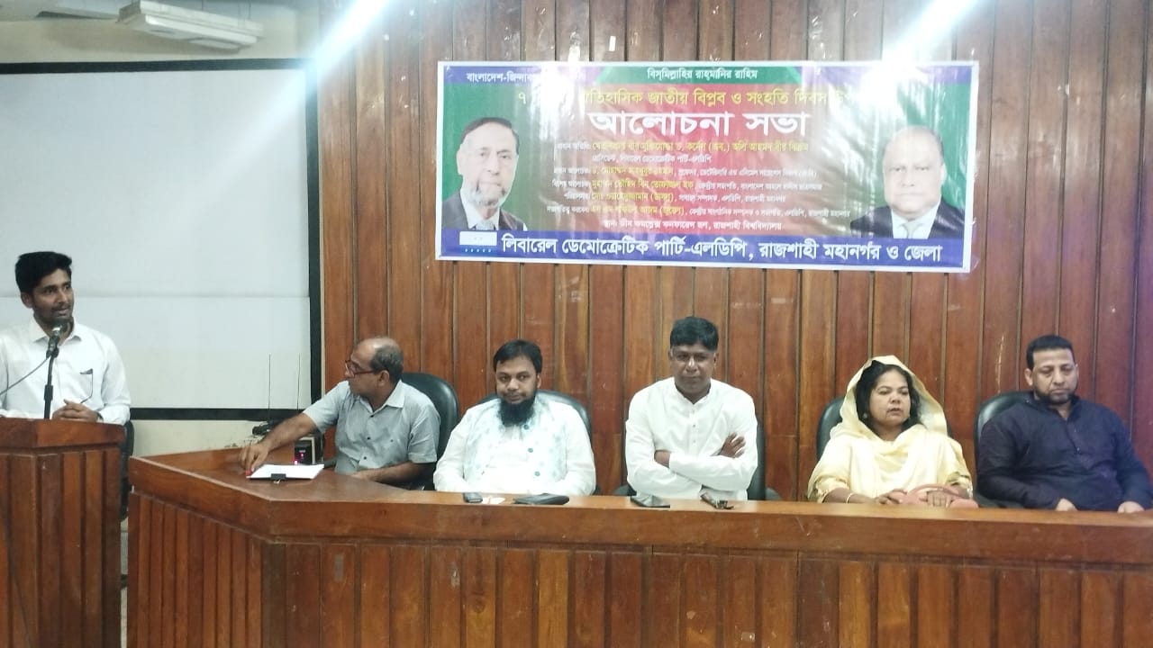 রাজশাহী বিশ্ববিদ্যালয়ে লিবারেল ডেমোক্রেটিক পার্টির (এলডিপি) উদ্যোগে ৭ নভেম্বর ঐতিহাসিক জাতীয় বিপ্লব ও সংহতি দিবস উপলক্ষে আলোচনা সভা অনুষ্ঠিত হয়েছে।