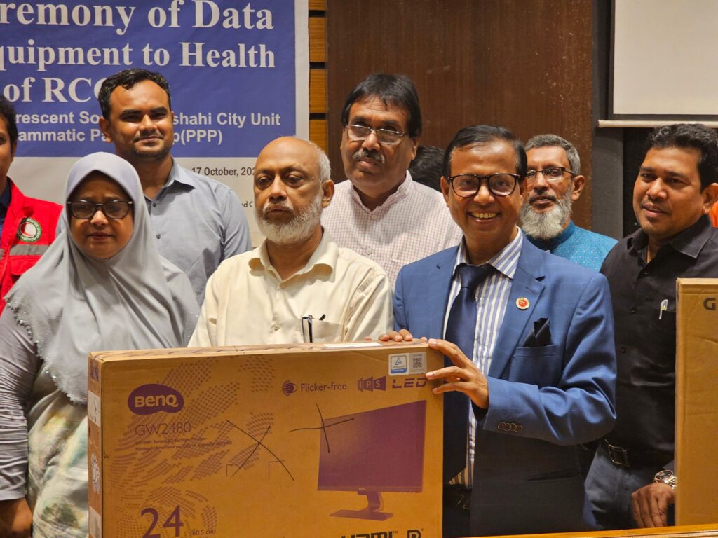 ওয়ার্ড পর্যায়ের স্বাস্থ্য সেবা সংক্রান্ত তথ্য সংরক্ষণে রাজশাহী সিটি কর্পোরেশনের স্বাস্থ্য বিভাগে দুটি কম্পিউটার হস্তান্তর করেছে বাংলাদেশ রেড ক্রিসেন্ট সোসাইটি।
