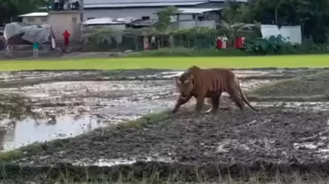 খোলা মাঠে কর্দমাক্ত জমিতে ঘুরে বেড়াচ্ছে এক বাঘ। চারদিকে উৎসুক জনতার ভিড়। কখনো বাঘটি গর্জন করছে। সম্প্রতি এমন একটি ভিডিও