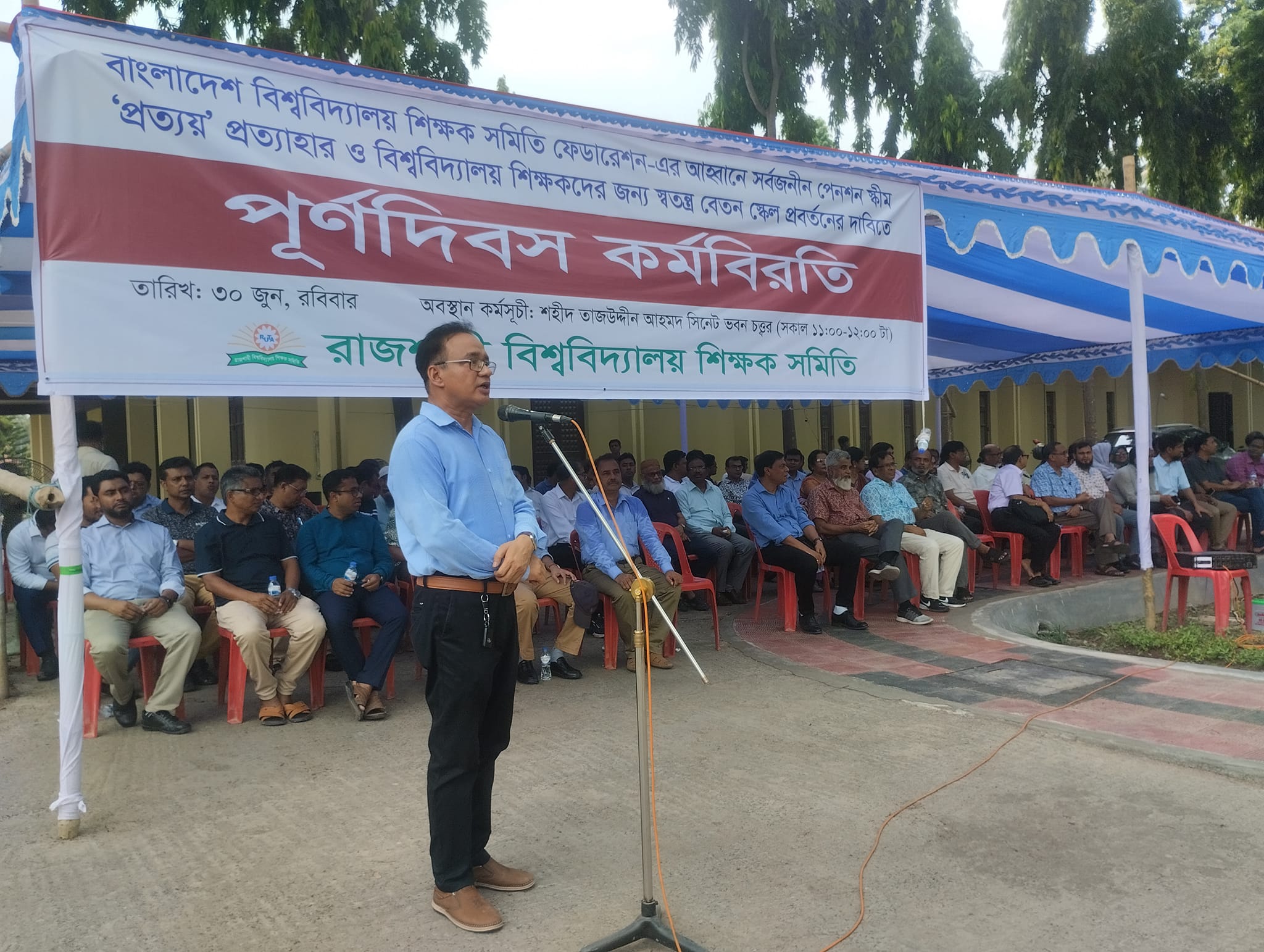 সরকারি রকারি চাকরিতে সর্বজনীন পেনশন নীতিমালা ‘প্রত্যয়স্কিম’ বাতিলের দাবিতে রাজশাহী বিশ্ববিদ্যালয়ের (রাবি) ও রাজশাহী প্রকৌশল ও প্রযুক্তি বিশ্ববিদ্যালয়ে সর্বাত্মক কর্মসূচি