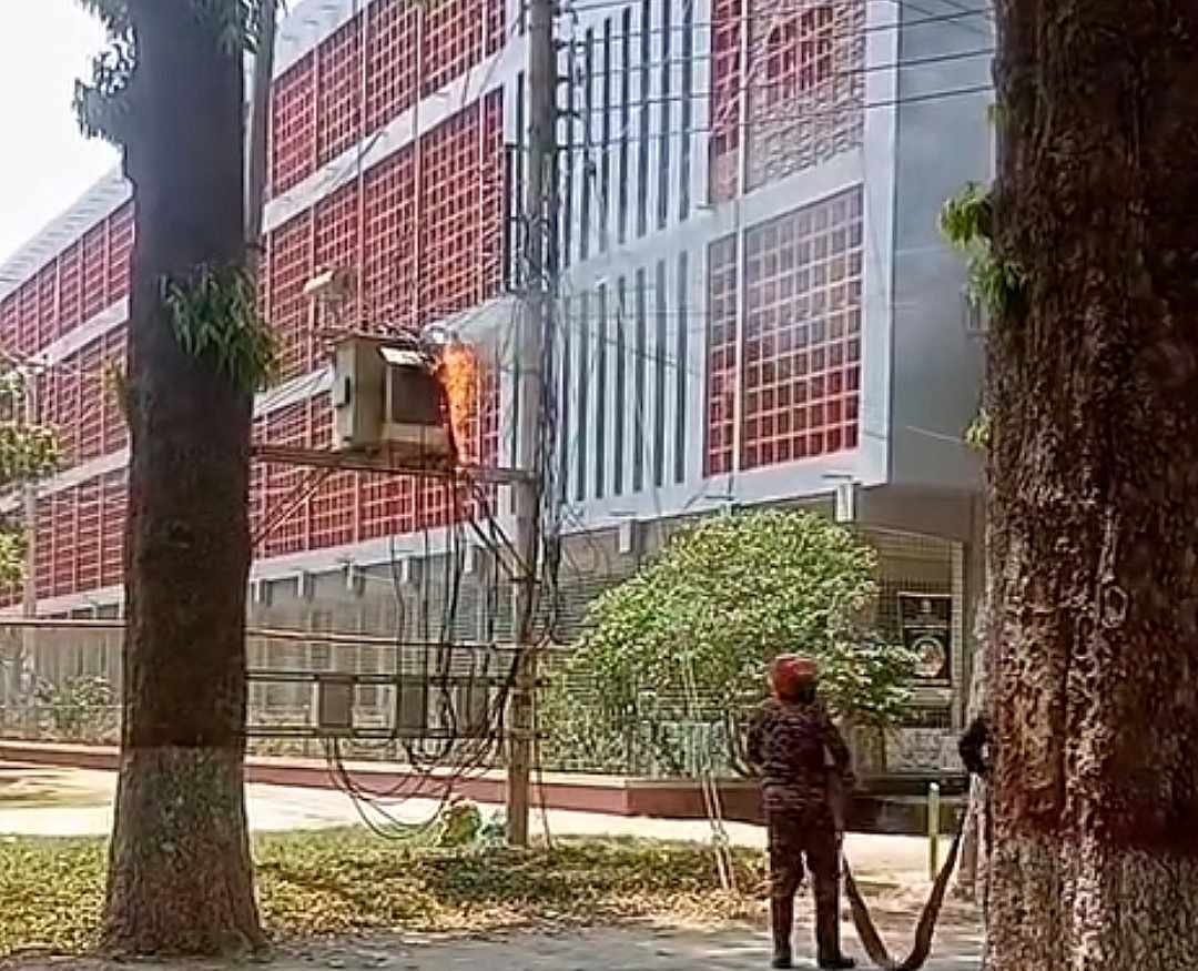 রাবির কেন্দ্রীয় লাইব্রেরি সংলগ্ন শহিদুল্লাহ কলা ভবনের সামনের ট্রান্সফরমারে আগুন