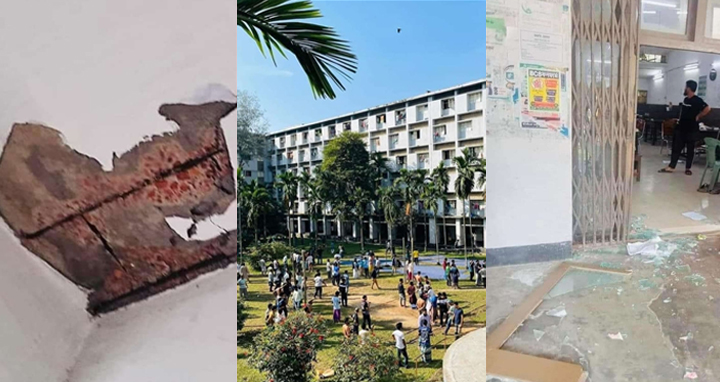 ভূমিকম্পে ঢাবির মুহসীন হলে খসে পড়ল পলেস্তারা
