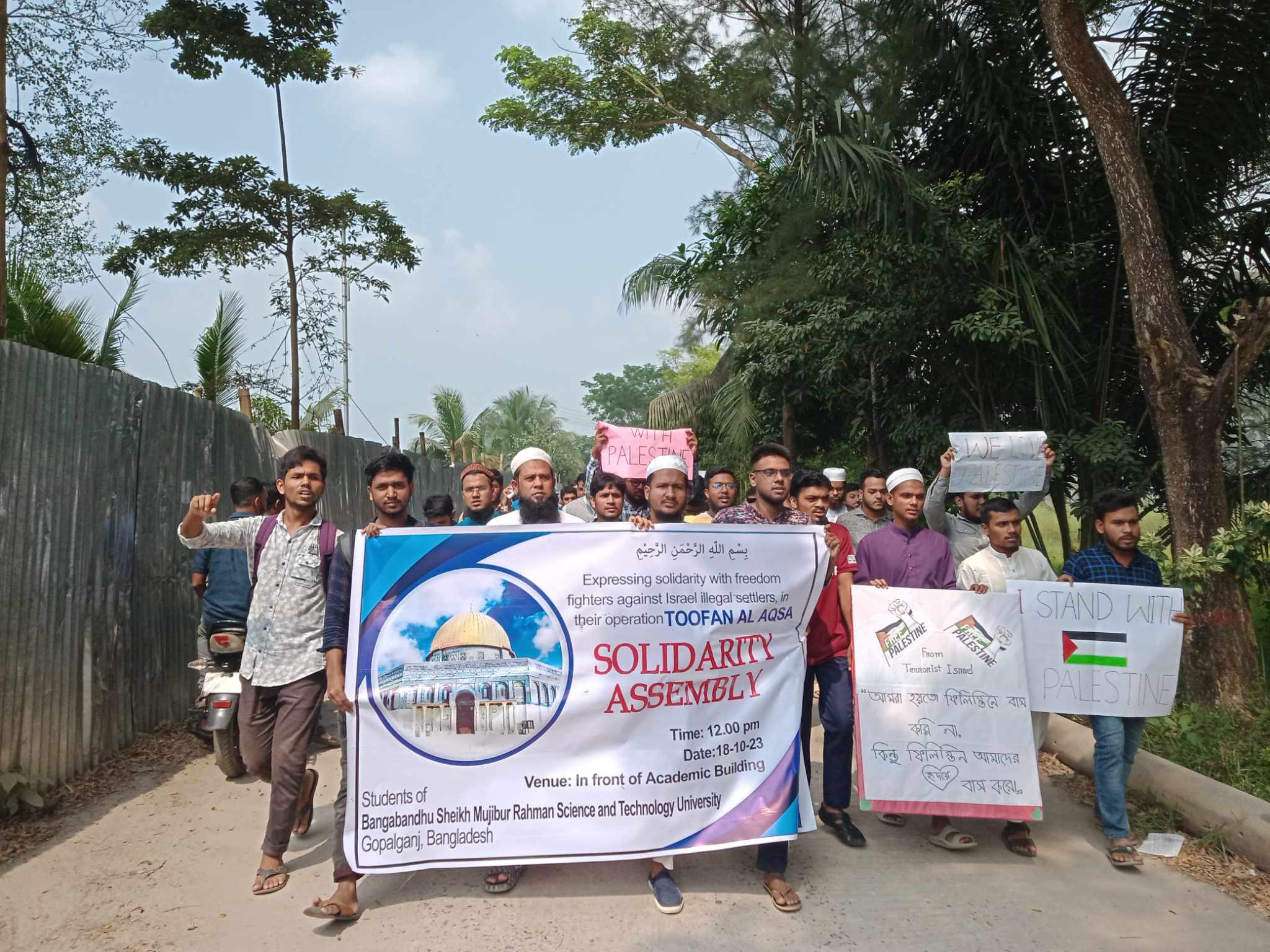 ফিলিস্তিনের উপর ইসরায়েলের বর্বর হামলার প্রতিবাদ ও ফিলিস্তিনের সাধারন মানুষের প্রতি সংহতি জানিয়ে বিক্ষোভ সমাবেশ ও মানববন্ধন করেছেন বঙ্গবন্ধু শেখ