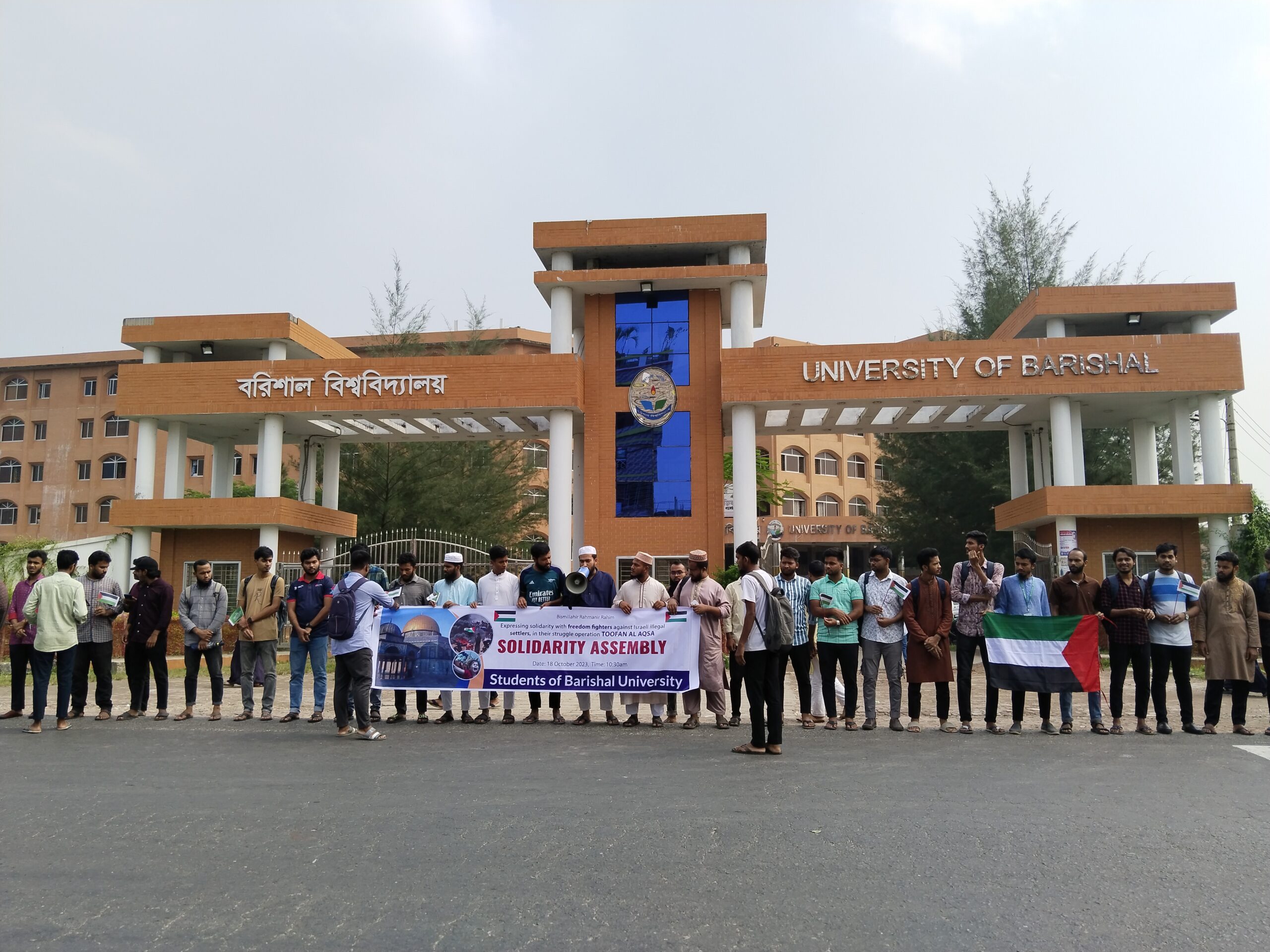 চলমান ফিলিস্তিন-ইসরাইল সংঘর্ষকে কেন্দ্র করে আজ বুধবার সকাল ১১ টায় ফিলিস্তিনিদের প্রতি সহমর্মিতা জানিয়ে মানব বন্ধন ও পদযাত্রা করেছে বরিশাল