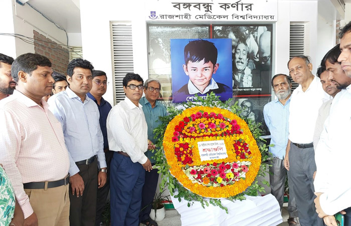 আজ বুধবার (১৮ অক্টোবর, ২০২৩) রাজশাহী মেডিকেল বিশ্ববিদ্যালয়ের (রামেবি) উদ্যোগে বিভিন্ন কর্মসূচির মাধ্যমে যথাযোগ্য মর্যাদায় ‘শেখ রাসেল দিবস-২০২৩’ উদযাপন করা