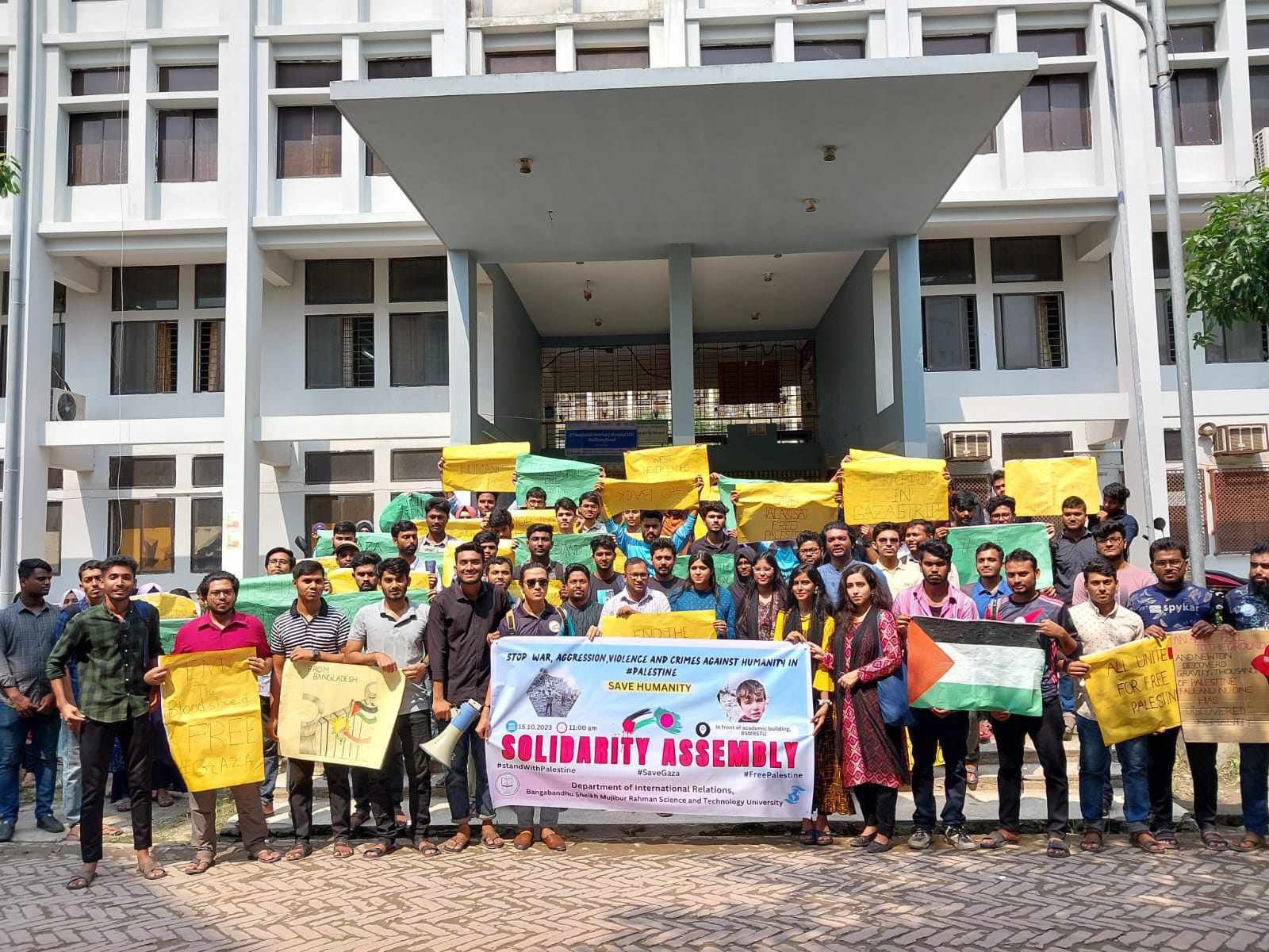 ফিলিস্তিনে ইসরায়েলি আগ্রাসীর হামলার বিরুদ্ধে মুক্তিকামী ফিলিস্তিনিদের প্রতিবাদী ও স্বাধীনতা সংগ্রামের সাথে একাত্মতা জানিয়ে সংহতি সমাবেশ করেছে রাজশাহী বিশ্ববিদ্যালয়ের (রাবি)
