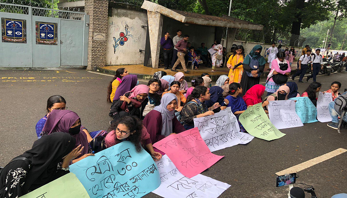 ঢাবি উপাচার্যের বাসভবনের সামনে ছাত্রীদের অবস্থান