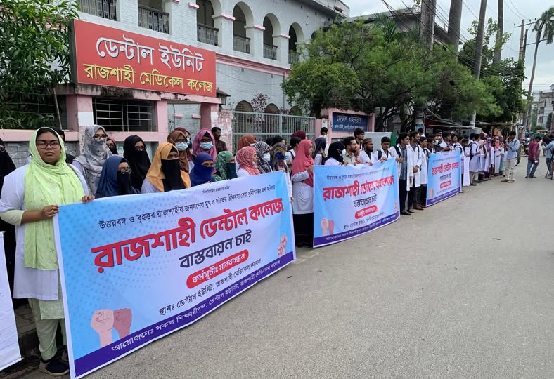 রাজশাহীতে পৃথক ডেন্টাল কলেজ প্রতিষ্ঠার দাবিতে মানববন্ধন