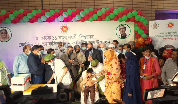 ৫ থেকে ১১ বছরের শিশুদের করোনার টিকা কার্যক্রম উদ্বোধন করা হয়েছে। বৃহস্পতিবার (১১ আগস্ট) দুপুরে বঙ্গবন্ধু আন্তর্জাতিক সম্মেলন কেন্দ্রে পর্যবেক্ষণমূলক