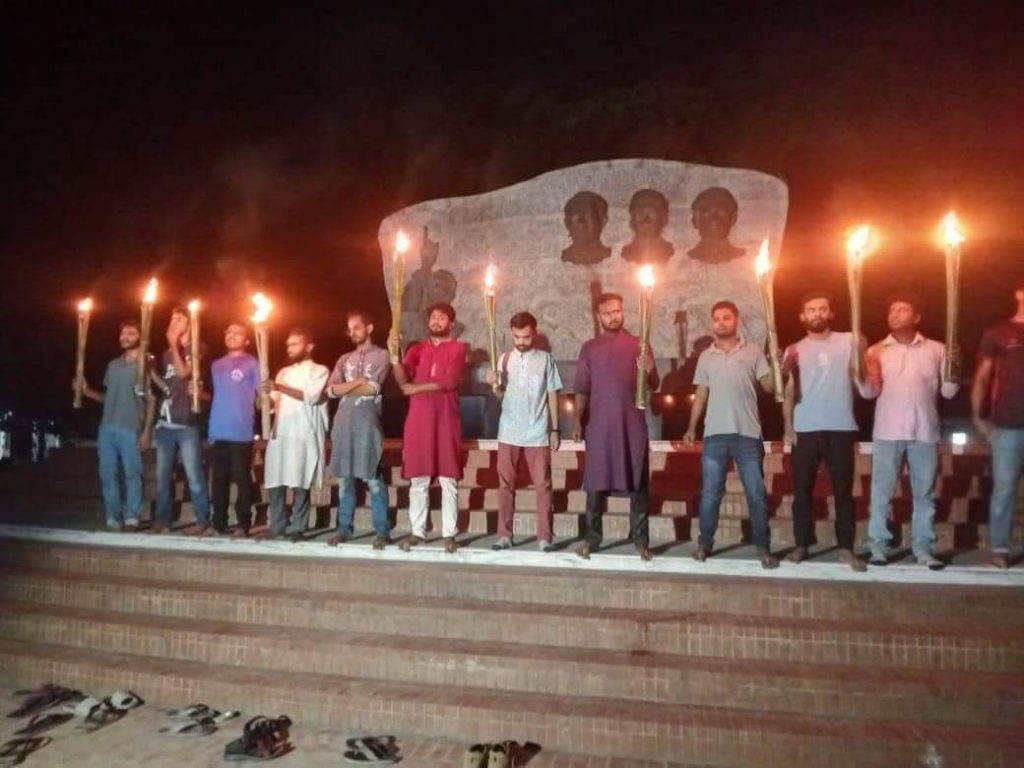 তেলের অতিরিক্ত মূল্য প্রত্যাহারের দাবিতে ও শাহবাগে আন্দোলনরত শিক্ষার্থীদের উপর পুলিশী হামলার প্রতিবাদে রাজশাহী বিশ্ববিদ্যালয়ে (রাবি) মশাল মিছিল ও সমাবেশ