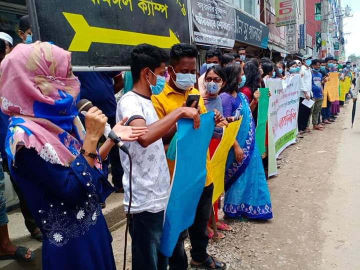 শিক্ষা প্রতিষ্ঠান খুলে দেয়ার দাবিতে শ্রীমঙ্গলে শিক্ষার্থীদের মানববন্ধন