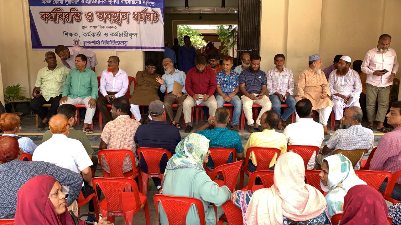 রাজশাহী বিশ্ববিদ্যালয়ে তৃতীয় দিনের মতো কর্মবিরতি ও অবস্থান ধর্মঘট