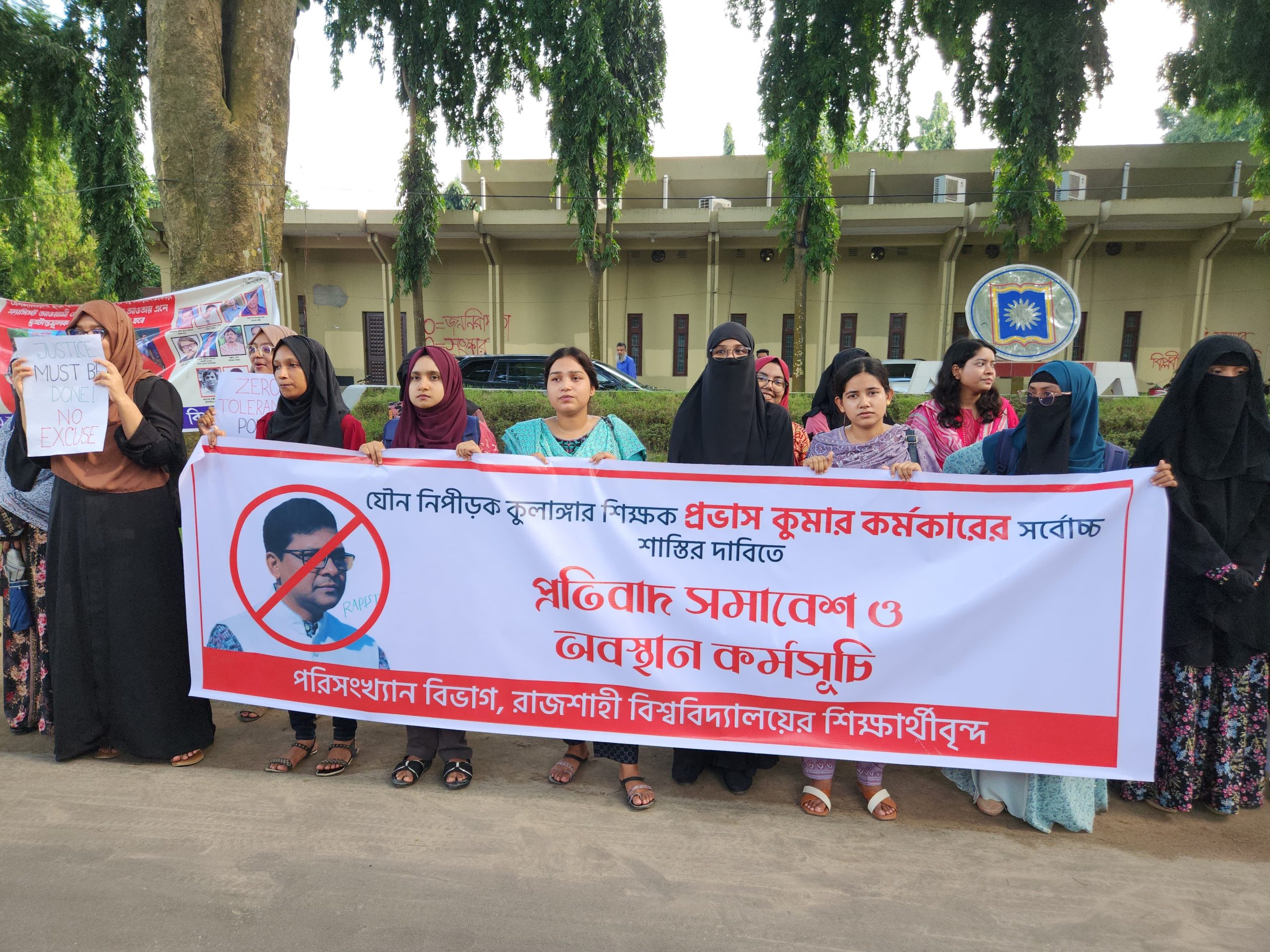 রাবি অধ্যাপকের শাস্তির দাবিতে শিক্ষার্থীদের প্রতিবাদ সমাবেশ