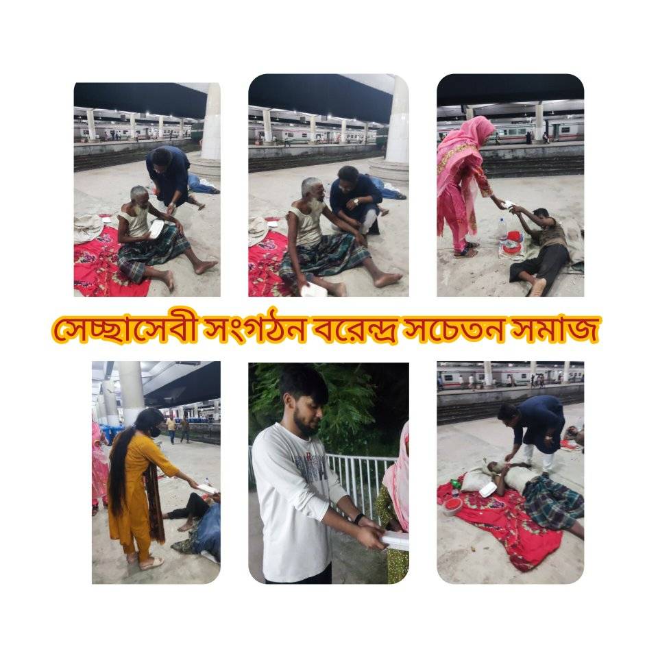 সেচ্ছাসেবী সংগঠন বরেন্দ্র সচেতন সমাজ এর আয়োজনে আজ রবিবার রাত ৮ টার সময় রাজশাহী রেল স্টেশনের কিছু অসহায় মানুষদের মাঝে