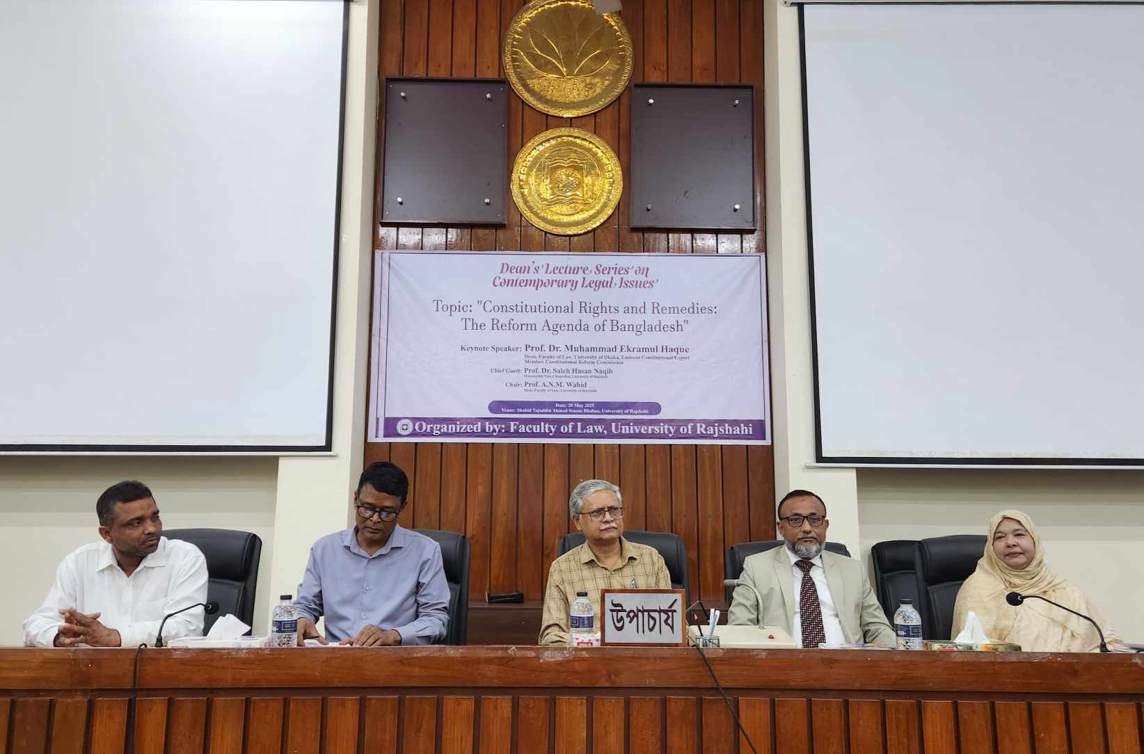 রাজশাহী বিশ্ববিদ্যালয়ে (রাবি) আইন অনুষদের ‘ডিন’স লেকচার সিরিজ অন কন্টেম্পোরারি লিগ্যাল ইস্যুজ’-এর অংশ হিসেবে একটি সেমিনার অনুষ্ঠিত হয়েছে। সেমিনারের বিষয়
