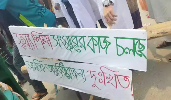 পর্যাপ্ত ওয়ার্ড সুবিধা না দেওয়ার প্রতিবাদে ও দ্রুত হাসপাতাল চালুর দাবিতে সুনামগঞ্জ-সিলেট মহাসড়ক অবরোধ করে বিক্ষোভ করছেন সুনামগঞ্জ মেডিকেল কলেজের
