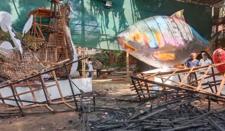 চারুকলায় শোভাযাত্রার জন্য তৈরি ভাস্কর্যে আগুন