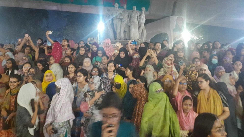ধর্ষণের বিচার দাবিতে মধ্যরাতে জাবি শিক্ষার্থীদের মহাসড়ক অবরোধ