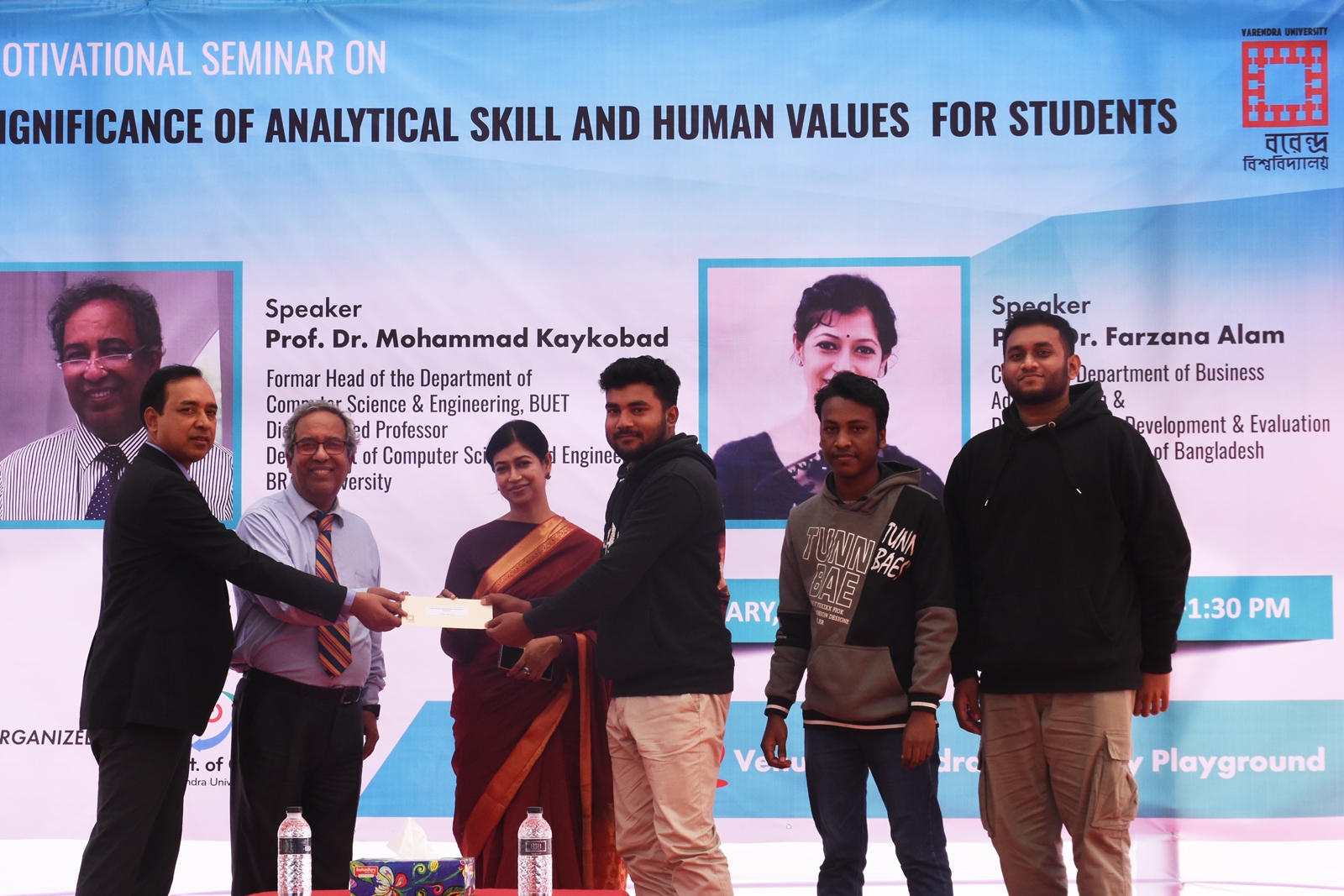 বরেন্দ্র বিশ্ববিদ্যালয়ের কম্পিউটার সায়েন্স অ্যান্ড ইঞ্জিনিয়ারিং (সিএসই) বিভাগ গত ১৯ জানুয়ারি ২০২৫ (রবিবার) সকাল ১০:৩০ মিনিটে বিশ্লেষণাত্মক দক্ষতা, মানবিক মূল্যবোধ